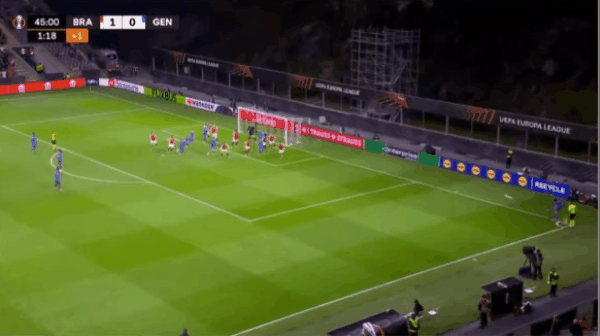 รายงานผลการแข่งขันยูโรป้าลีก เฮย์แมนส์ ยิง 1 ครั้ง จ่ายบอล 1 ครั้ง ซาลาซาร์ ยิง 2 ประตู เกงค์ 4-3 บราก้า