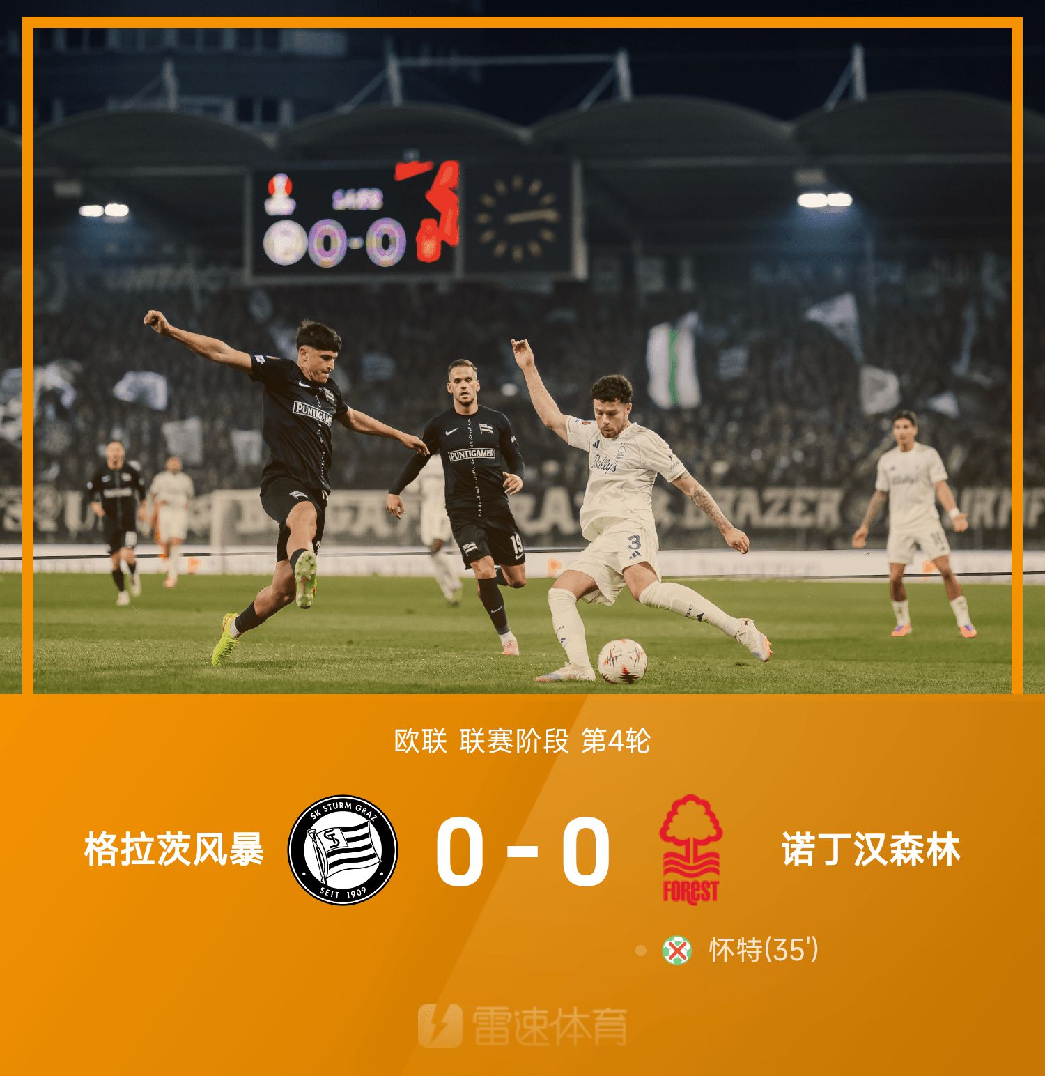 รายงานผลการแข่งขันยูโรปาลีก ไวท์พลาดประตูชัย โดมิงเกซชนเสา ฟอเรสต์ 0-0 กราซสตอร์ม