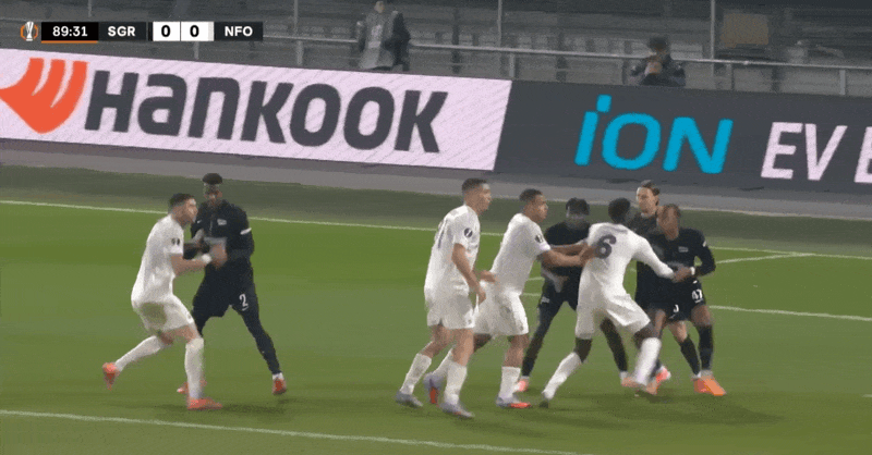 6' คิเตชวิลีล้มลงกับพื้นหลังจากส่งบอล กรรมการตัดสินว่าไม่มีการละเมิด อดีตกล่าวชมอย่างเงียบ ๆ