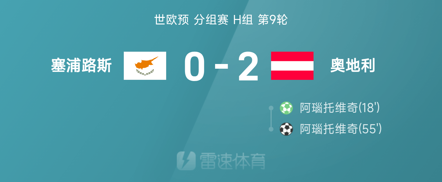 รายงานพรีวิวฟุตบอลโลก อนาโตวิช ยิงสองประตู ออสเตรีย 2-0 ไซปรัส