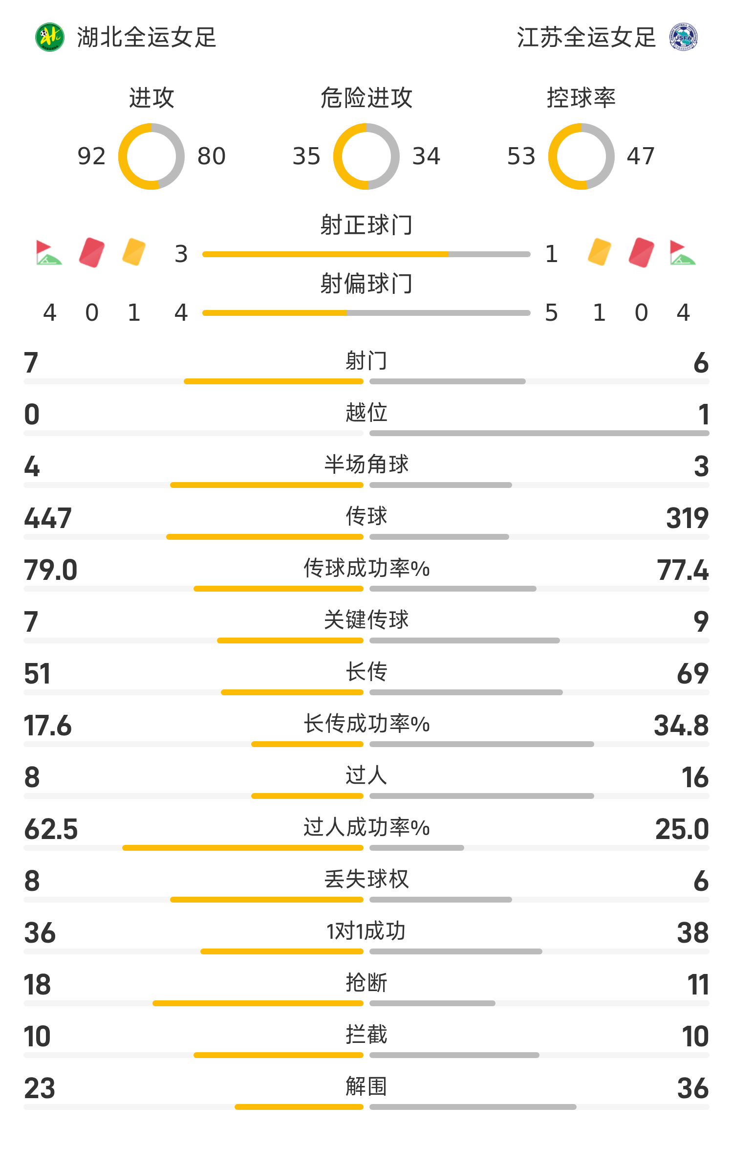ผู้เล่นตัวจริงฟุตบอลหญิงทีมชาติเจียงซู: 22-กัว ซินหยู, 5-หยาง เฉียน, 4-เส้า ซีเจีย, 27-เฉียว รุยชิง, 37-หม่า จุน, 28-วาน เว่ยจิง, 12-ฮั่ว เยว่ซิน, 29-หยาง ลี่, 9-อู๋ เฉิงซู, 17-ฮวง ซินยี่ 32-หยู เจียฉี