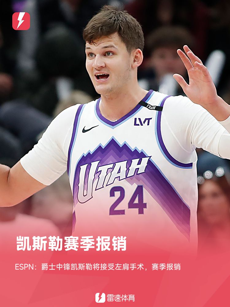 ชามส์: แจ๊ส หมายเลข 5 เคสเลอร์เข้ารับการผ่าตัดไหล่ซ้าย และต้องพักทั้งฤดูกาล