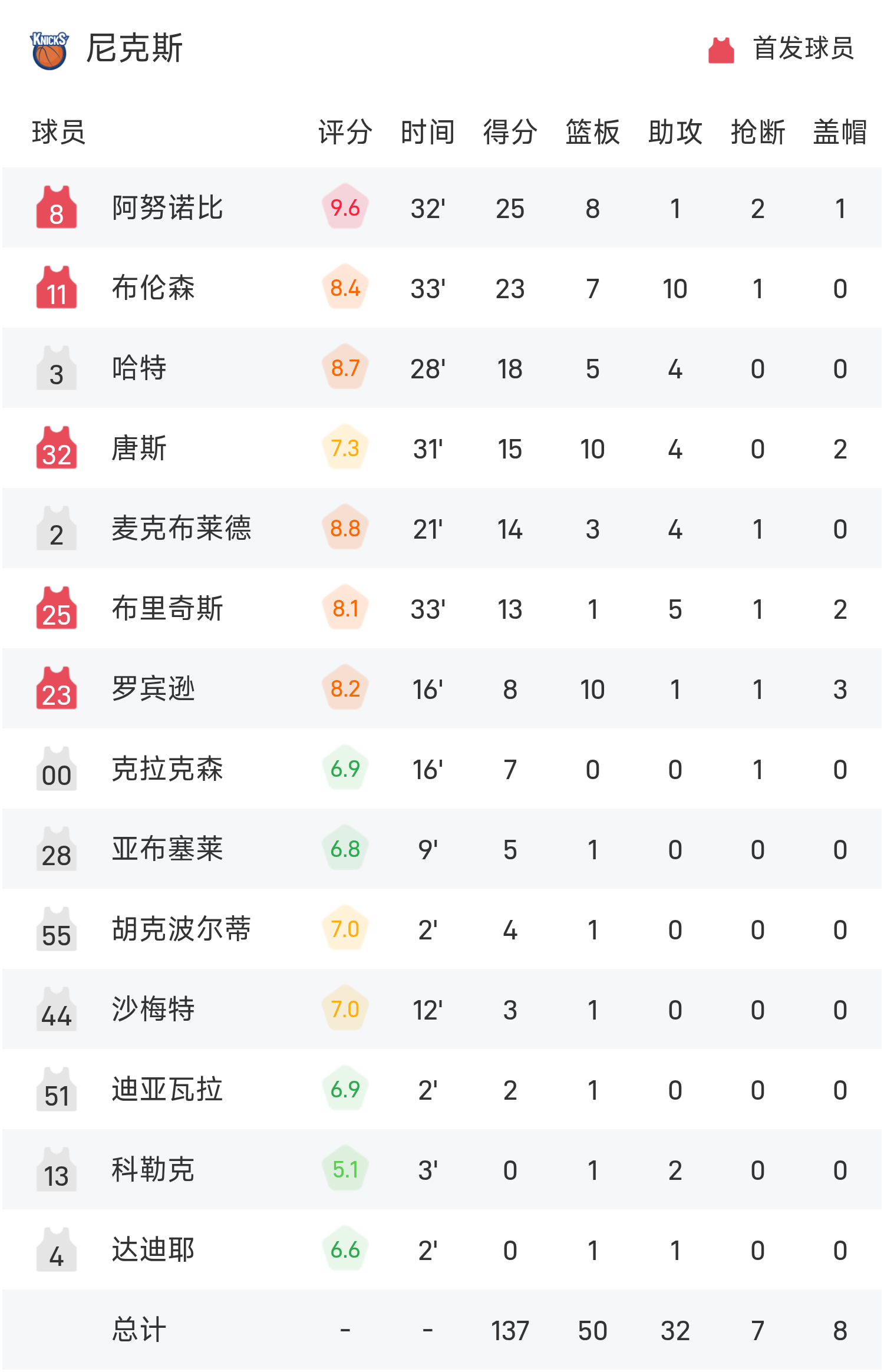 อนุโนบี้ทำ 25 แต้ม 8 รีบาวด์ พาทีมคว้าชัย 23 แต้ม 7 รีบาวด์ 10 แอสซิสต์ แรนดัลล์ทำคะแนนสูงสุดในเกม 32 แต้ม 5 รีบาวน์และ 4 แอสซิสต์