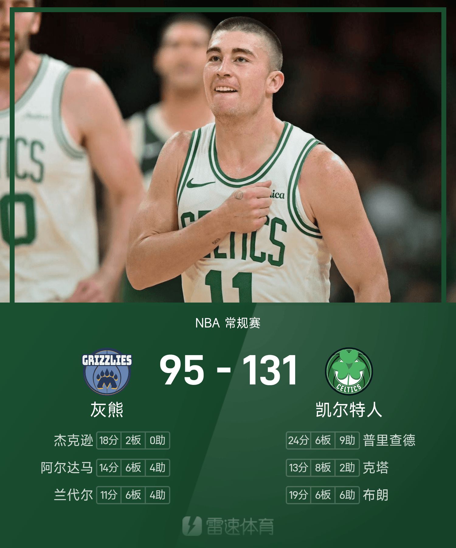 ในตอนท้ายของเกม เซลติกส์เอาชนะกริซลี่ส์ 131-95