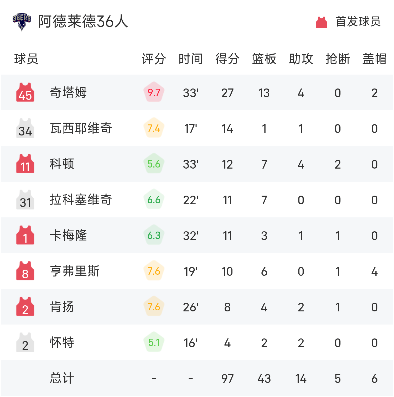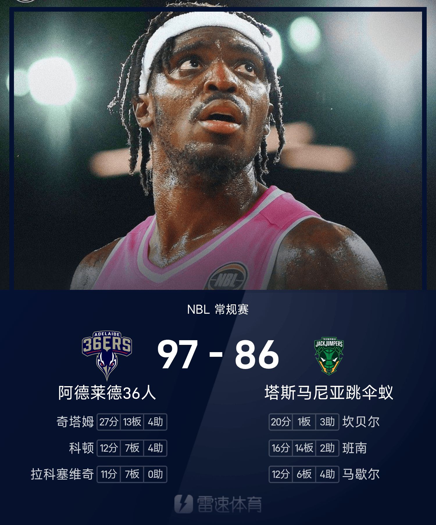 ชีแธมทำคะแนนสูงสุดในเกม 27 แต้ม 13 รีบาวด์ และ 4 แอสซิสต์ นำ 36 แอดิเลดไปสู่ชัยชนะ