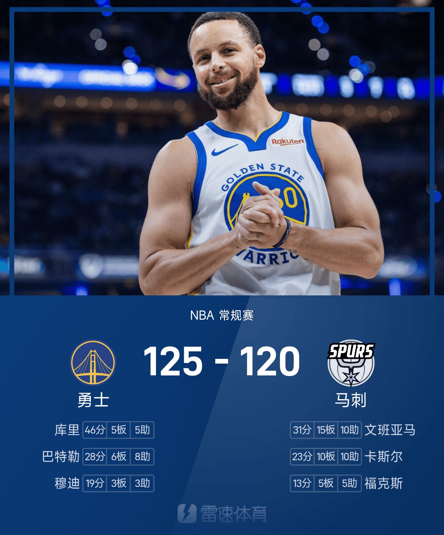 6686 กีฬา ข่าว 13 พฤศจิกายน ในฤดูกาลปกติของ NBA 25/26 สเปอร์สเผชิญหน้ากับวอร์ริเออร์ส จบเกม สเปอร์ส แพ้ วอร์ริเออร์ส 120-125 Curry ทำคะแนนสูงสุดในเกม 46 แต้ม 5 รีบาวน์และ 5 แอสซิสต์ นำทีม Warriors ไปสู่ชัยชนะ