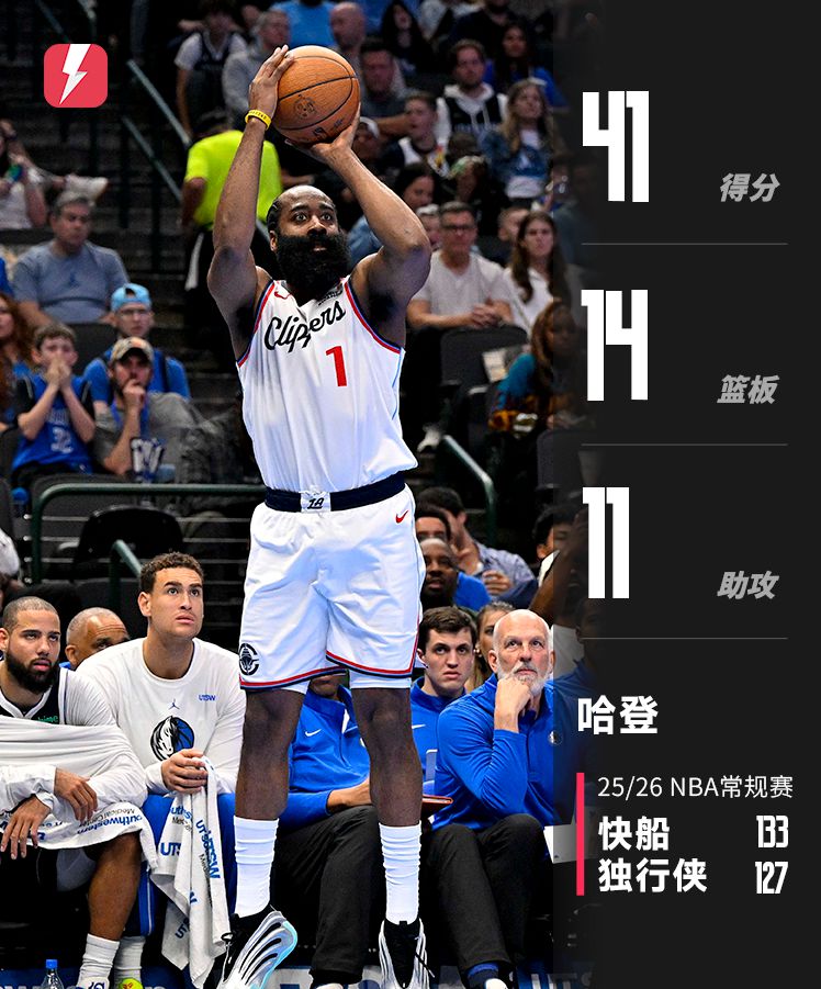 ฮาร์เดนยังเป็นผู้เล่นอายุมากที่สุดในประวัติศาสตร์ที่ทำทริปเปิล-ดับเบิ้ลได้มากกว่า 40 ครั้ง ผลงานที่โดดเด่นของเขาช่วยให้ Clippers ยุติการแพ้รวด 6 เกม